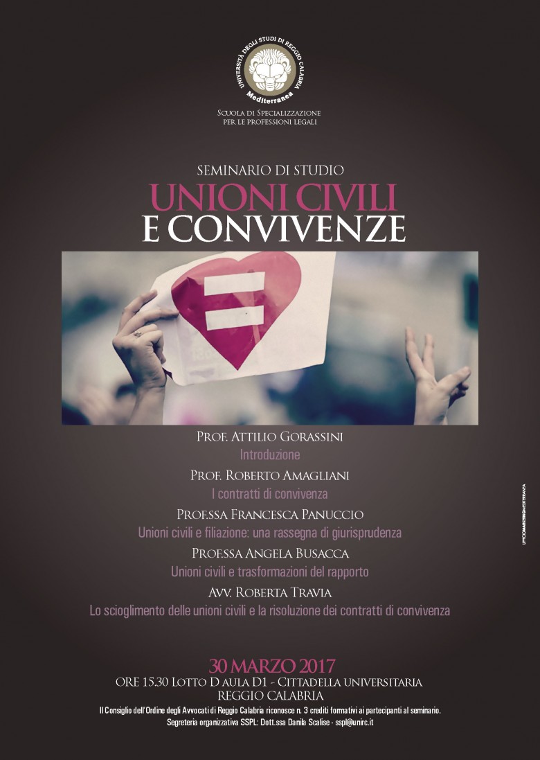 30 marzo Seminario Unioni Civili e convivenze