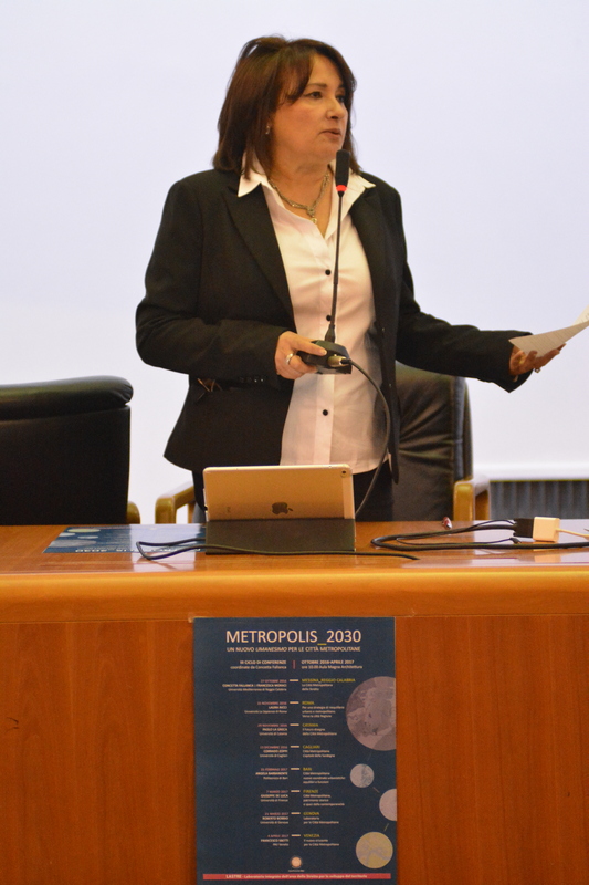Ha introdotto i lavori il responsabile scientifico del LASTRE e coordinatore dei cicli di conferenze, la professoressa Concetta Fallanca presentando la figura di Francesco Sbetti, sottolineandone il ruolo di direttore di Urbanistica Informazioni, rivista importante per chi si occupa di città e di territorio e che riesce ad intercettare ed orientare il dibattito e le nuove tendenze di progettazione della città. Sbetti è stato curatore del primo rapporto sulle Città Metropolitane presentato nel luglio 2015 a Reggio Calabria nel corso del Festival delle Città metropolitane. Prosegue poi ricordando che questo terzo ciclo di conferenze è servito per capire lo stato dei lavori delle 14 città metropolitane e quale ruolo possono svolgere per lo sviluppo del territorio nazionale (all’interno del sistema Città Paese nella rete delle città europee) in un regime di complementarietà, a partire dalla valorizzazione delle aree interne. Adesso diventa importante contrastare questa sorta di controriforma che avanza e che porta ad una perdita di interesse anche a livello nazionale e tentare di mantenere alta l’attenzione sulle prospettive di questa nuova governance voluta con determinazione dal Ministro Delrio.