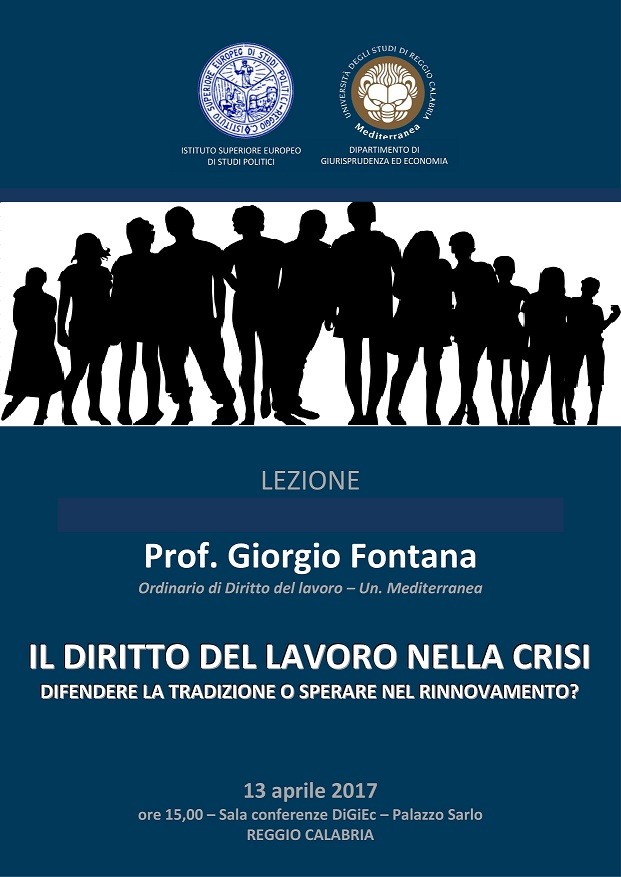 13 aprile Lezione del prof. Fontana Il Diritto del lavoro nella crisi. Difendere la tradizione o sperare nel rinnovamento?