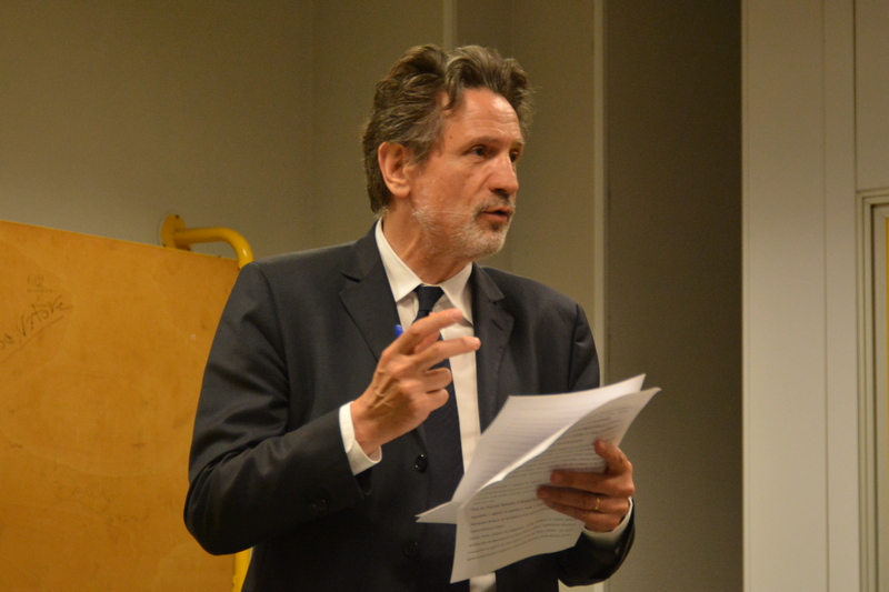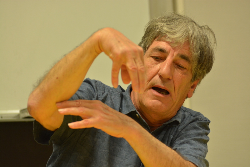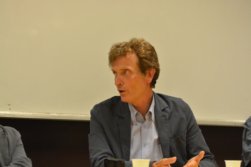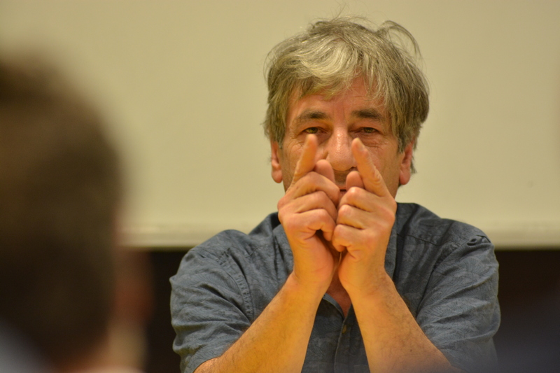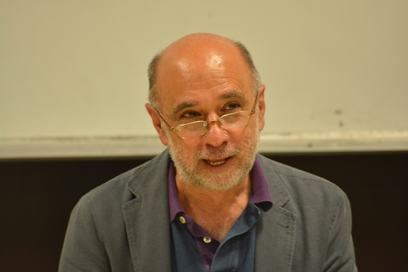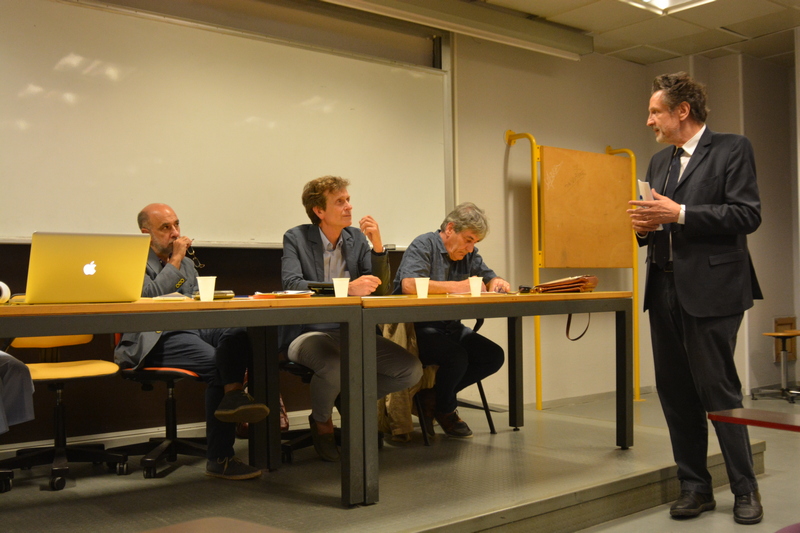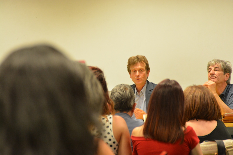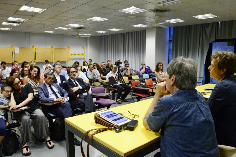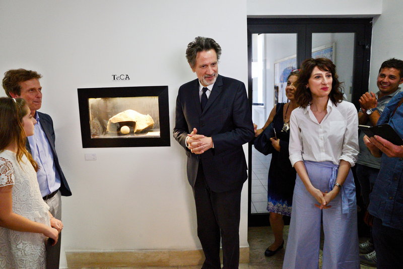 Dialogano intorno alla sua opera il Prof. Salvatore Di Fazio_Docente del Dipartimento di Agraria e il Prof. e artista Ghislain Mayaud_Docente presso l’Accademia di BBAA di RC.