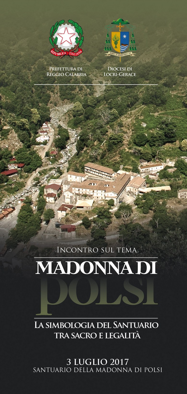 Il prossimo 3 luglio, alle ore 11.00, presso il Santuario della Vergine Maria Madre del Divin Pastore a Polsi, nel Comune di San Luca, avrà luogo l'incontro "La simbologia del Santuario nel rapporto tra sacro e legalità".