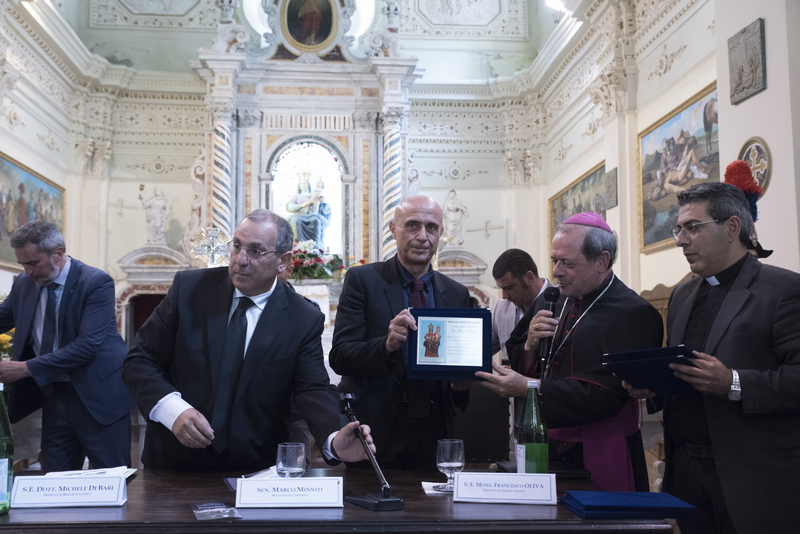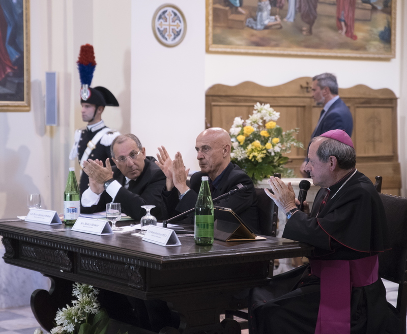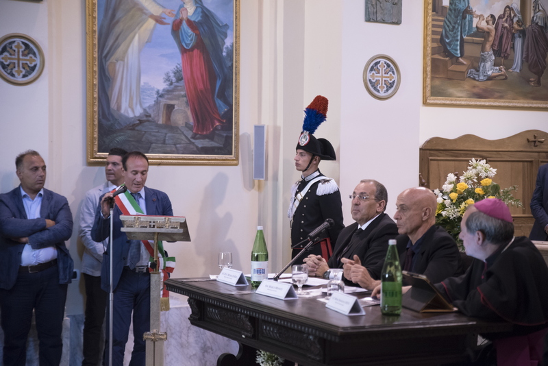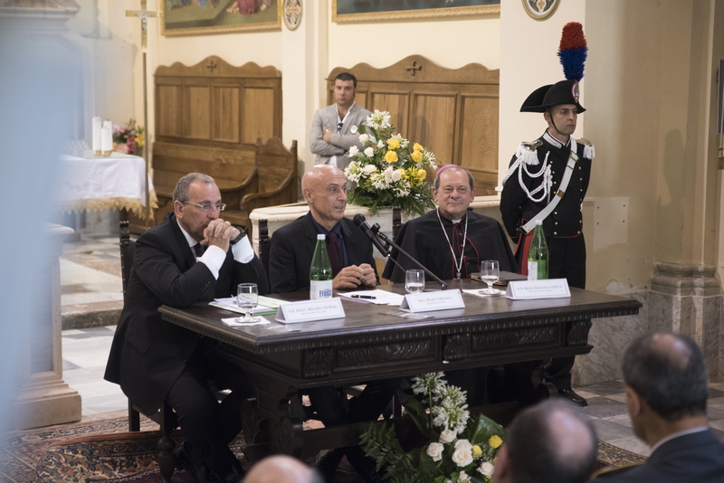 Con una cerimonia sobria ma densa di contenuti nello stile che caratterizza il savoir faire istituzionale del Prefetto Michele di Bari, lo Stato rappresentato nelle sue componenti civili e militari, ha riaffermato la presenza nei sacri luoghi del Santuario della Madonna di Polsi: non solo meta di fedeli e luogo intriso di sacralità ma anche avamposto di legalità. L’incontro ha assunto un significato ancor maggiore in considerazione dell’autorevole presenza del Ministro dell'Interno Sen. Marco Minniti, che ha testimoniato la presenza e l’attenzione del Governo verso il territorio. Nel corso del suo intervento il Ministro ha sottolineato il ruolo della cultura per la formazione delle attuali e future classi dirigenti della terra di Calabria e come leva sociologica sulla quale far convergere forze ed energie positive per pianificare lo sviluppo endogeno dei nostri territori. Particolare significato ha assunto in questa direzione, il plauso e il ringraziamento che il Ministro Minniti ha voluto rivolgere alla nostra Università e in particolare al Magnifico Rettore Prof Pasquale Catanoso per il prezioso, alacre e minuzioso lavoro, non solo pedagogico-formativo, svolto in questi ultimi anni dalle Componenti Accademiche nel (e per) il territorio. Su questo specifico punto anche il Prefetto Michele di Bari, in apertura dei lavori e nel corso dell'incontro ha più volte ribadito il ruolo strategico che la nostra Università sta svolgendo in seno alla piattaforma inter-istituzionale che vede coinvolti i vari attori pubblici per la realizzazione di iniziative importanti ed eccezionali a queste latitudini. L'Università Mediterranea rappresentata dal Magnifico Rettore Prof. Pasquale Catanoso, il Pro Rettore Vicario Prof. Santo Marcello Zimbone, dal Direttore generale Prof. Ottavio Amaro e soprattutto da un folto e qualificato gruppo di studenti e personale amministrativo, ha anche in questa memorabile (per contenuti, contesto e finalità) occasione svolto un ruolo nevralgico per l'organizzazione e la buona realizzazione dell'iniziativa. Particolarmente apprezzato per i suoi contenuti e la spontaneità dimostrata, l'intervento della neo laureata in Architettura Dott.ssa Ester Mussari già Rappresentante degli studenti in seno al Consiglio di Amministrazione di Ateneo.
