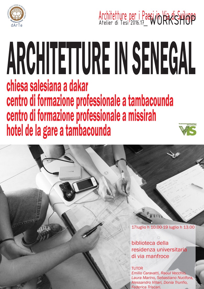 Nell’ambito delle attività dell’Atelier di Tesi “Architettura per i paesi in via di sviluppo”, attivato dal Dipartimento dArTe, dal 17.07.2017 al 19.07.2017 si svolgerà un workshop di progettazione, aperto a tutti gli studenti, sui progetti di tesi di laurea degli studenti dell’atelier per il Senegal.