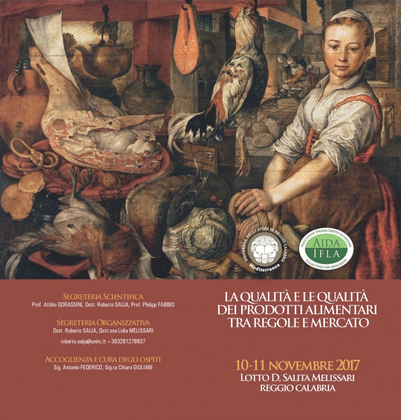 Il 10 e l'11 novembre l'AIDA/IFLA, Associazione Italiana di Diritto Alimentare, in collaborazione con l'Università Mediterranea, ha organizzato il Convegno annuale nella nostra città su un tema cruciale per le nuove strategie del mercato agroalimentare: "La qualità e le qualità dei prodotti alimentari tra regole e mercato".