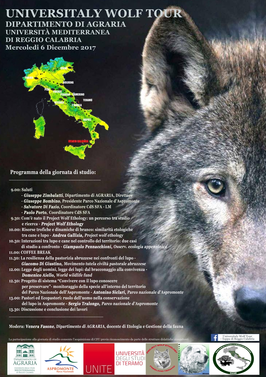 Mercoledi 6 dicembre arriva a Reggio Calabria, ospite del Dipartimento di Agraria dell'Università Mediterranea, Universitaly Wolf Tour, un evento scientifico-divulgativo itinerante che coinvolge una decina di Atenei italiani (Oltre Reggio Calabria, Teramo, Rieti, Torino, Udine, Pisa, Bologna, Firenze, Camerino, Perugia, Napoli, L’Aquila).