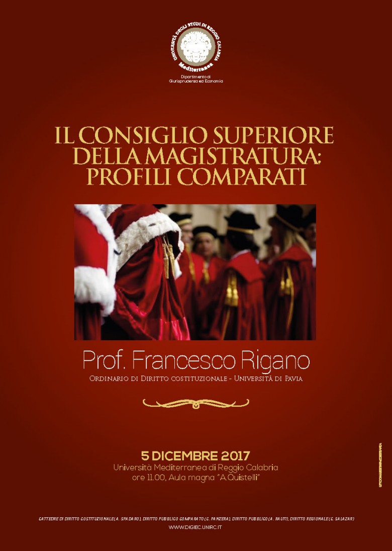 5 dicembre Lectio magistralis del prof. Francesco Rigano "Il Consiglio Superiore della Magistratura: profili comparati”