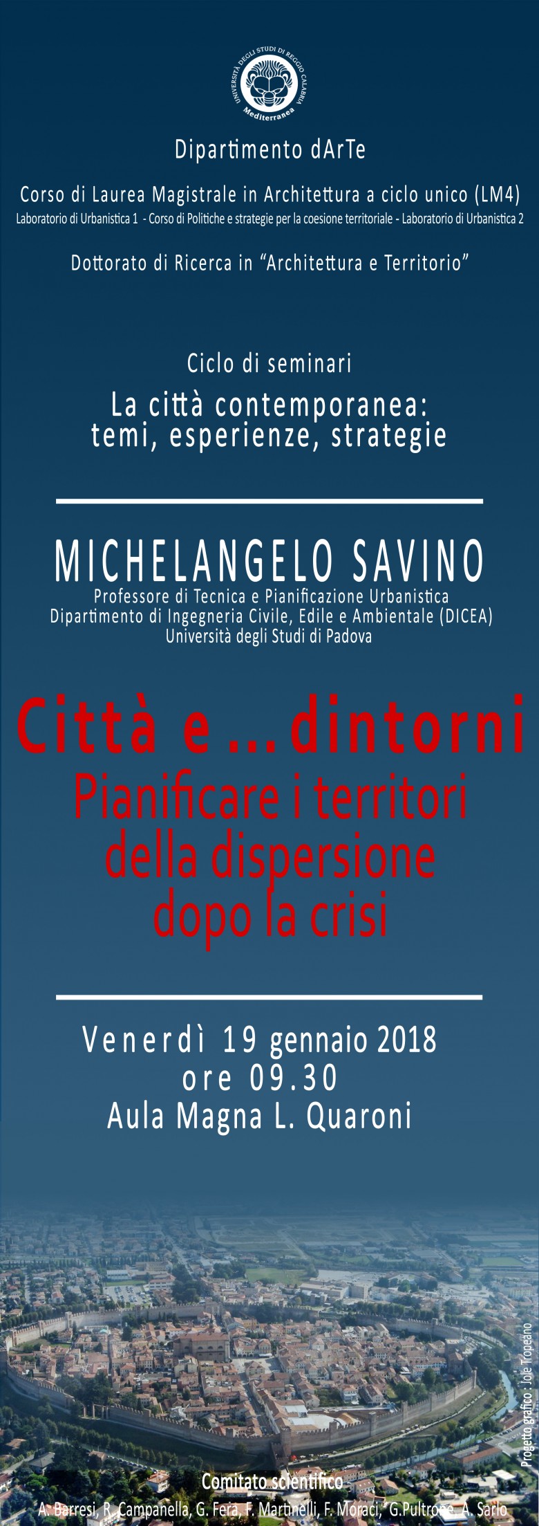 Il ciclo di seminari, articolato in 6 conferenze da novembre 2017 ad aprile 2018, è stato promosso e organizzato dai docenti dell’Area Urbanistica del Dipartimento di Architettura e Territorio (Alessandra Barresi, Raffaella Campanella, Giuseppe Fera, Francesca Moraci, Flavia Martinelli, Gabriella Pultrone e Antonella Sarlo) nel contesto delle attività culturali del dArTe.