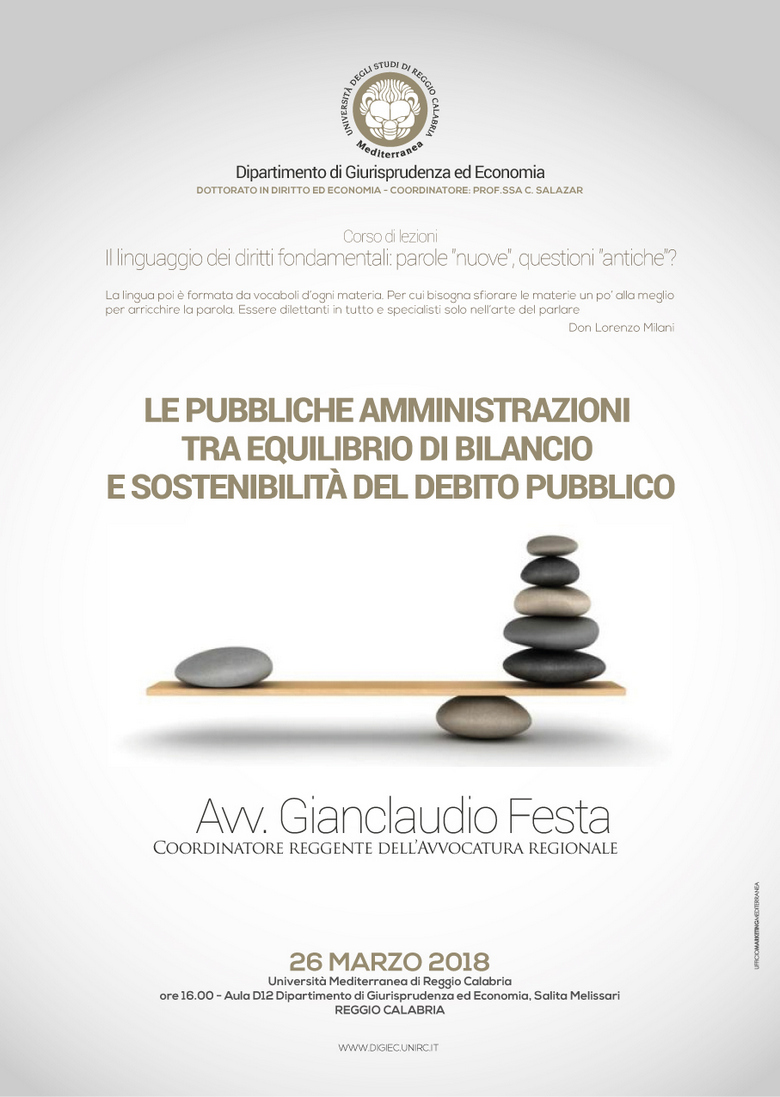 Prosegue il corso di lezioni del Dottorato in Diritto ed Economia, coordinato dalla prof.ssa C. Salazar.