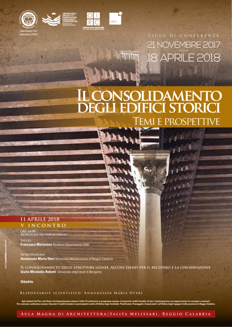 Nata all’interno del corso di consolidamento degli edifici storici del corso di laurea magistrale in Architettura-Restauro del Dipartimento PAU, l’iniziativa, in collaborazione con l’Ordine degli architetti della provincia di Reggio Calabria, intende portare l’attenzione di studenti e professionisti architetti e ingegneri, sul tema complesso del rinforzo strutturale dell’edilizia storica con particolare riferimento alla sicurezza sismica. Il ciclo di conferenze che vede coinvolti docenti universitari con grande esperienza nel settore, si incentrerà sul rapporto, piuttosto controverso, tra sicurezza strutturale e rispetto dei valori autentici degli edifici su cui intervenire e dunque al rapporto fra progetto di consolidamento e progetto di restauro di un dato edificio.