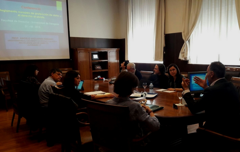 Il tema, attuale e di fondamentale importanza, è stato poi trattato, su richiesta di una docente presente in aula, anche nella facoltà di diritto dell’Università di Saragozza (https://derecho.unizar.es/el-reglamento-general-europeo-de-proteccion-de-datos-y-el-derecho-al-olvido-por-d-angelo-viglianisi), sempre dal prof. Angelo Viglianisi Ferraro che ha manifestato orgoglio e soddisfazione per la stipulazione dell’ennesimo accordo Erasmus ed è stato informato dell’assegnazione della Medaglia al merito accademico, come “Abogado del Año” per il suo impegno nello studio e la diffusione della cultura dei diritti umani, dalla Federazione iberoamericana con sede in Messico.