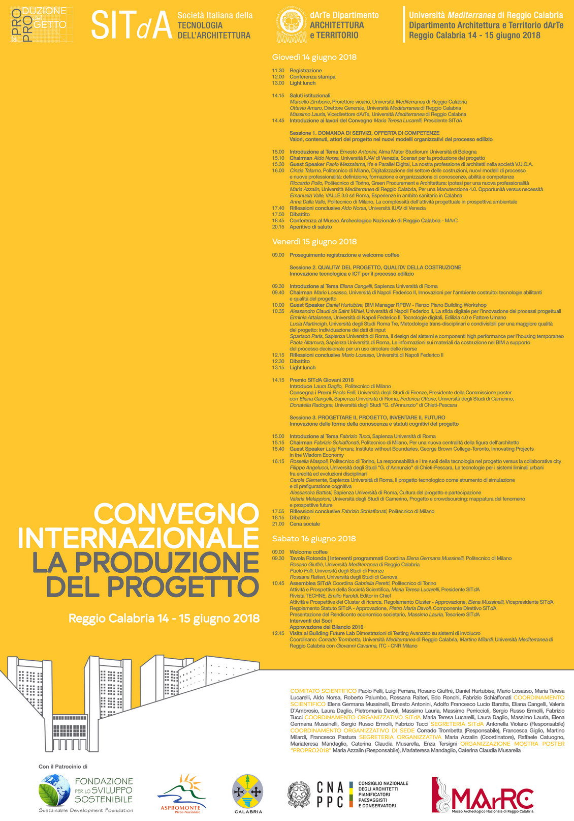 Il 14 e 15 giugno 2018, si è svolto presso Università Mediterranea il Convegno internazionale “La produzione del progetto”, organizzato dalla Società Italiana di Tecnologia dell’Architettura – SITdA e dal Dipartimento Architettura e Territorio-dArTe.
