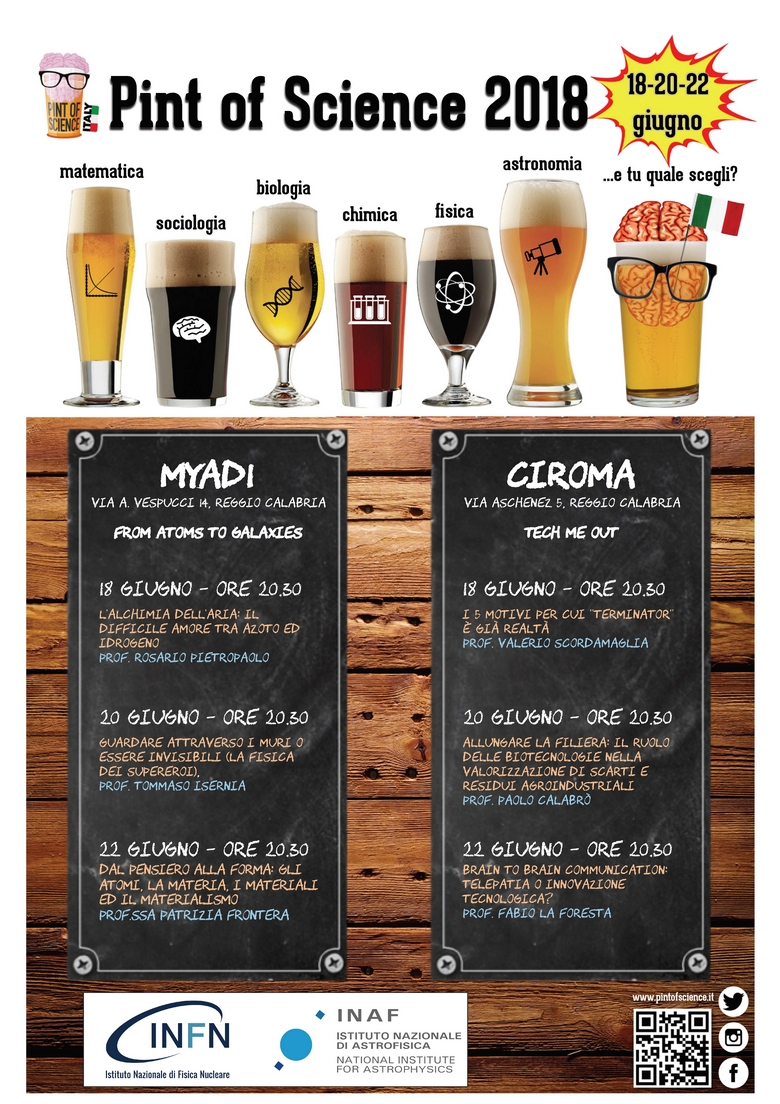 Questo, nel dettaglio, il programma Pint of Science 2018 - Reggio Calabria: