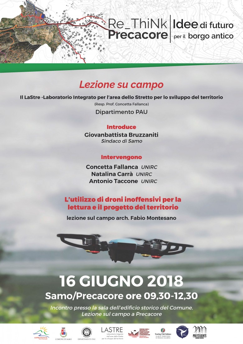 Il prossimo 16 giugno 2018 si terrà presso il Borgo antico di Precacore la lezione sul campo a cura dell’arch. Fabio Montesano con l’utilizzo dei droni inoffensivi per la lettura e il progetto del territorio.