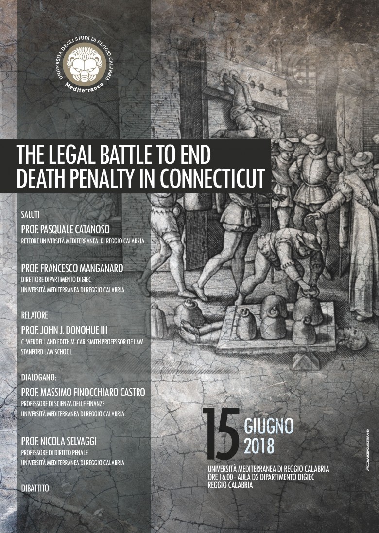 Venerdì 15 giugno alle ore 16:00 il DiGiEc ospiterà una conferenza del professor John J. Donohue, III dell’Università di Stanford dal titolo “The Legal Battle to End Death Penalty in Connecticut”.