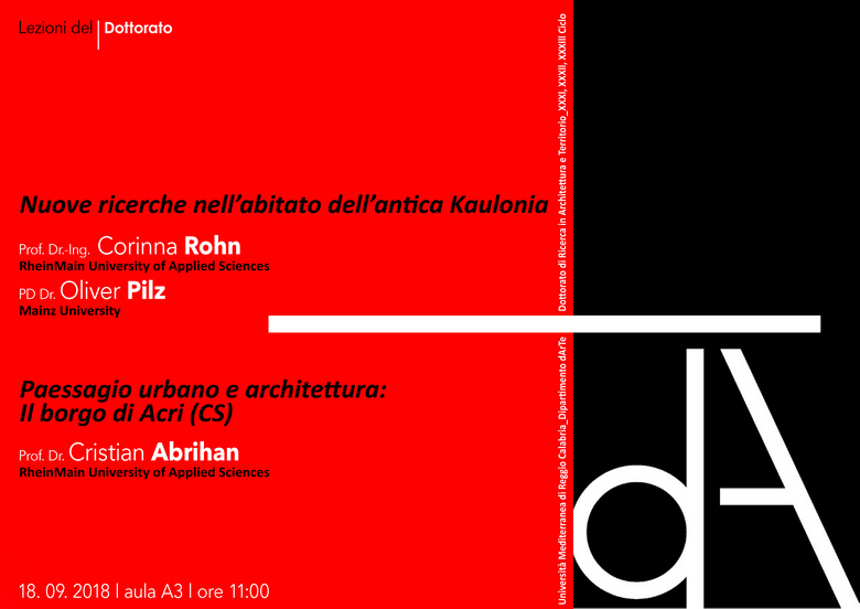 ll Ciclo di seminari organizzato dal Dottorato Internazionale Architettura e Territorio del Dipartimento dArte, coordinato dal prof. Gianfranco Neri, presenta un doppio appuntamento giorno 18.09.2018 curato dal prof. Ottavio Amaro.
