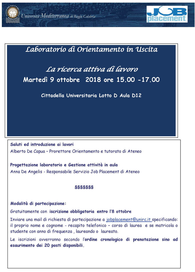 Job Placement Università Mediterranea - Lotto D