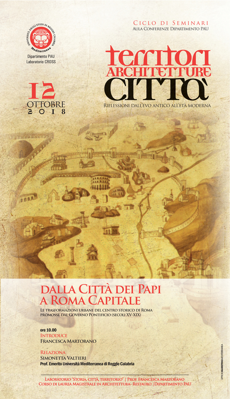 Saranno trattati temi pertinenti la storia territoriale ed urbana e la rappresentazione dello spazio, colti da diverse angolazioni e con diversi approcci. Argomenti di grande respiro, quali le trasformazioni della Capitale e l’urbanistica delle città dal medioevo alla città barocca, si alterneranno a considerazioni e dati aggiornati sull’apporto dell’archeologia per la conoscenza delle città greche e romane in Calabria. La dimensione territoriale sarà esaminata nell’aspetto percettivo e visuale, con inedite riflessioni sull’interpretazione cartografica e sull’iconografia del paesaggio.