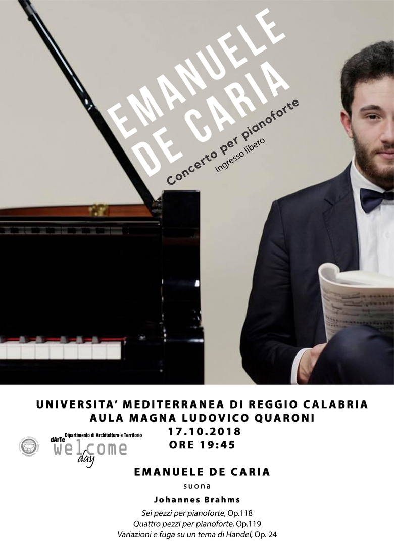 Emanuele De Caria, giovanissimo talento già rivelatosi a livello nazionale e internazionale, terrà un concerto di musica classica il 17 ottobre alle ore 19:45, presso l’Aula Magna “Ludovico Quaroni” dell’Università Mediterranea di Reggio Calabria.