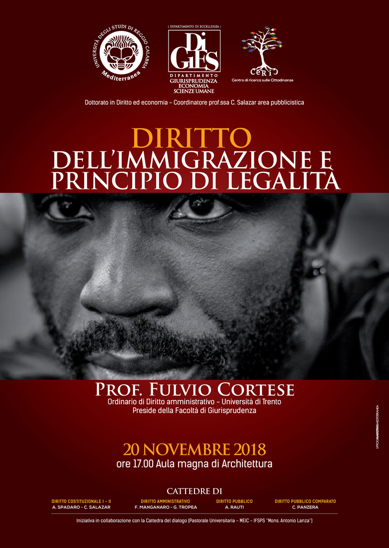Il 20 novembre 2018, alle ore 17.00, il prof. Fulvio Cortese (Ordinario di Diritto amministrativo, Università di Trento) terrà una conferenza sul tema “Diritto dell’immigrazione e principio di legalità”.