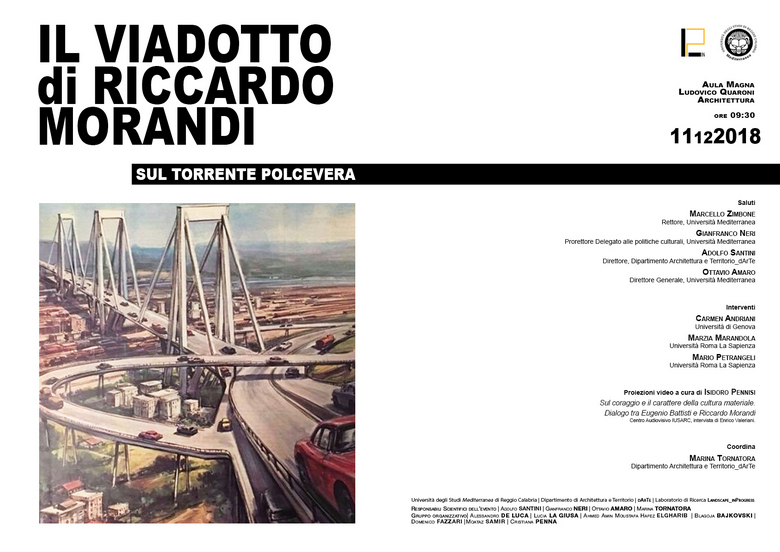 L’11 dicembre presso l’Aula Magna Quaroni dell’Università Mediterranea di Reggio Calabria dalle 9.30, si terrà il seminario Il Viadotto di Riccardo Morandi sul torrente Polcevera, che intende affrontare le problematiche scaturite dal crollo del Viadotto, del 14 agosto 2018, secondo un duplice aspetto:
