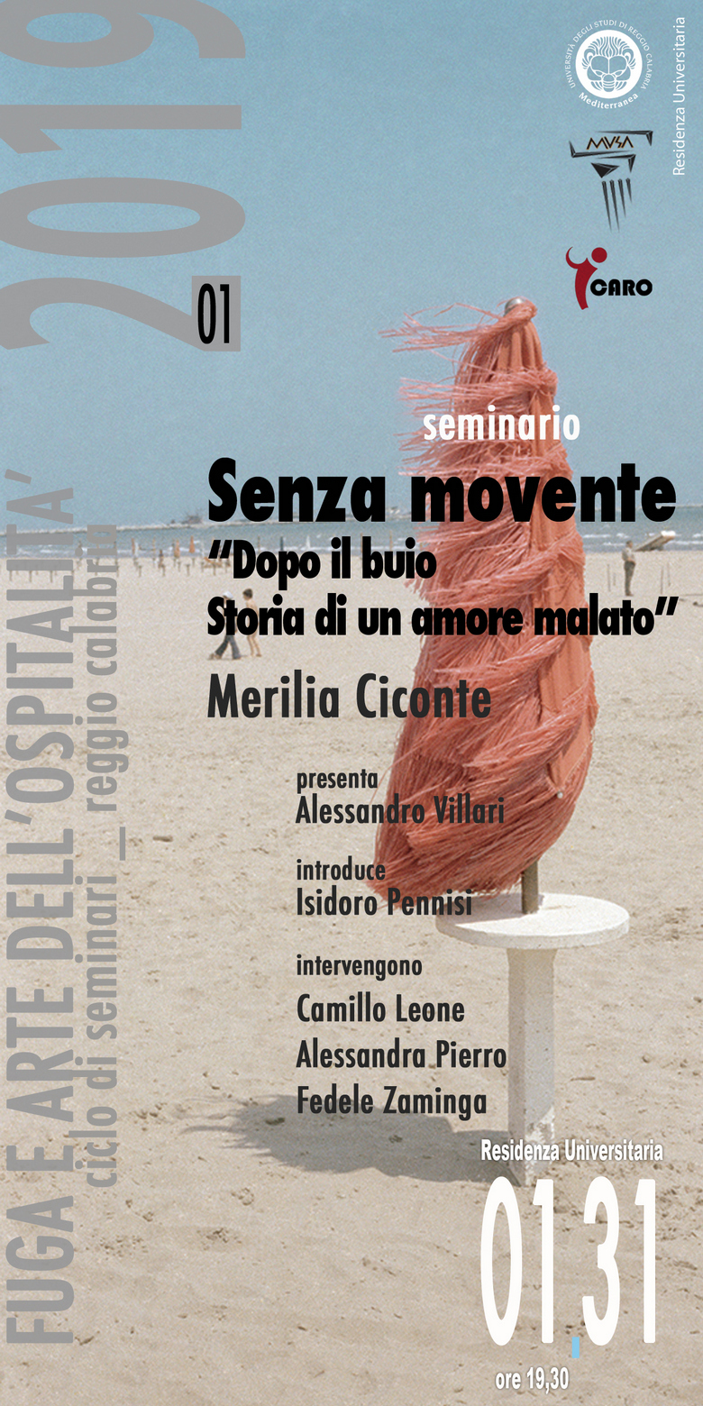 Il tema dei “Seminari del Residence” del 2019 affronterà la relazione che esiste tra le diverse forme della fuga e quelle dell’ospitalità. Fuga intesa non tanto com’evasione da una situazione di assenza di libertà, ma come slancio in avanti, strappo repentino per portarsi in posizione più avanzata, maniera per lasciare dietro il gruppo compatto a una velocità e con intenzione diverse da chi ha l’intuizione e la necessità della fuga. Si proverà a discutere su diverse forme di fuga e di ospitalità."