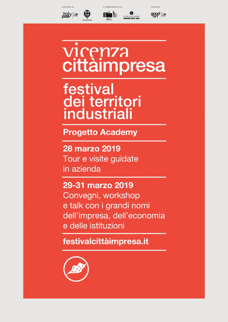 Sono aperte le candidature per partecipare all’Academy del Festival Città Impresa, un’occasione unica di incontro, scambio e formazione – in programma a Vicenza dal 29 al 31 marzo 2019 – aperta a studenti dei corsi di laurea triennale, specialistica, master e dottorato di tutte le Università italiane.