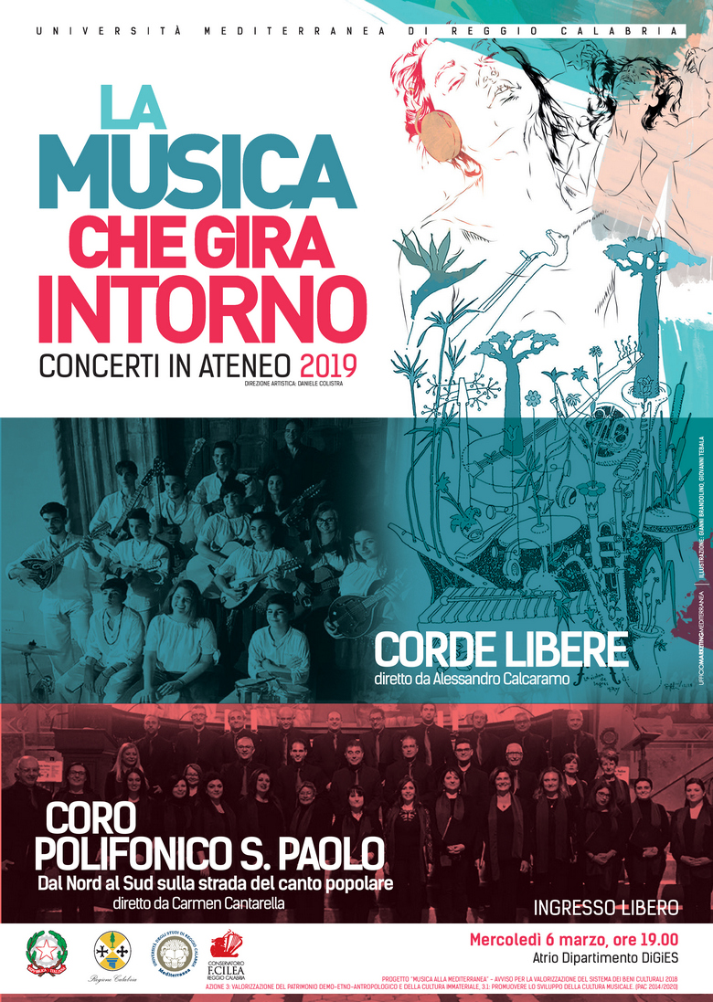 Doppio appuntamento per la sesta data de "La Musica che gira intorno 2019": mercoledì 6 marzo alle 19.00, nell'atrio del Dipartimento DiGIES si esibiranno il gruppo strumentale Corde Libere ed il Coro polifonico San Paolo.