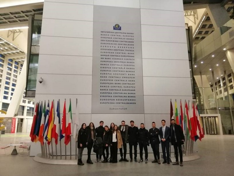 […] Ad accoglierci c’è Mauro Baldo, funzionario della BCE, impegnato nel settore della vigilanza bancaria. Quasi subito ci raggiunge Stefano Nardelli ed insieme ci rechiamo in una sala conferenza nella quale prende inizio ufficialmente l’incontro. Le conoscenze acquisiste […] ci permettono di seguire con attenzione la presentazione che ha per oggetto la politica monetaria e la vigilanza bancaria, intervenendo attivamente alla discussione. Partecipare ad un’esperienza simile ci rende consapevoli di come lo studio universitario, fatto di argomenti prettamente teorici, abbia in realtà una sostanza tangibile, fatta di persone che operano con impegno per il soddisfacimento di bisogni comunitari.