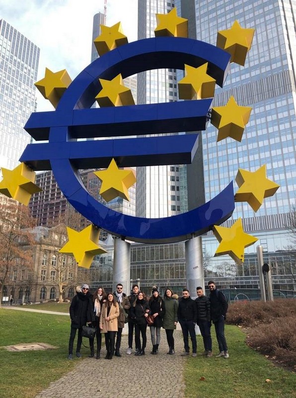 Poco prima delle 16:00 […] ci incamminiamo verso la BCE. Nessuno lo domanda ad alta voce, ma ognuno di noi si chiede che effetto avrebbe fatto vedere dal vivo quell’istituzione di cui abbiamo così tanto trattato nel primo semestre di quest’anno accademico. Mentre vari pensieri navigano nella mente arriviamo alla nostra meta. Eccola lì, la BCE, in tutta l’imponenza della sua struttura.