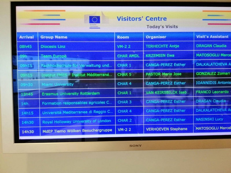 […] <la> Commissione Europea, la nostra seconda tappa. L ’incontro è fissato per le 14:00. Superati i controlli di sicurezza attendiamo […] i funzionari Salvatore D’Acunto e Dino Pinelli. Il primo ci illustra la composizione, le funzioni e i poteri della Commissione Europea,