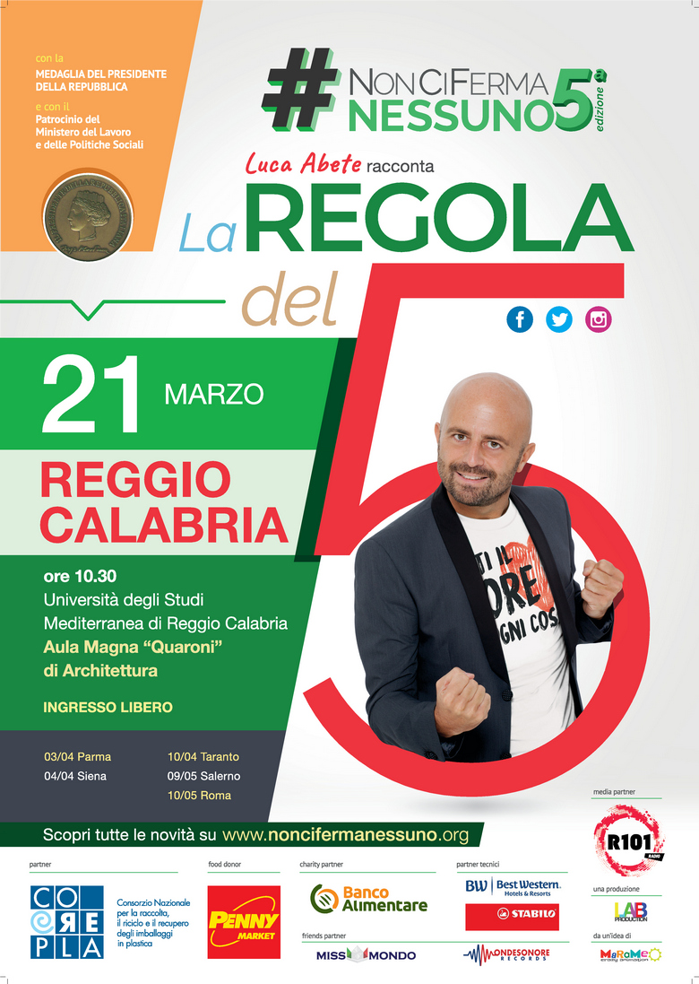 Torna in Ateneo il tour motivazionale di Luca Abete #NonCiFermaNessuno, giovedì 21 marzo dalle 10.30 in Aula Magna Quaroni.