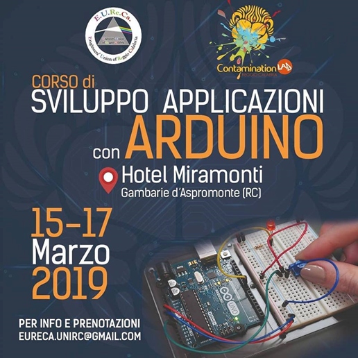 Il Contamination Lab dell’Università degli Studi Mediterranea di Reggio Calabria, laboratorio universitario per la promozione della cultura dell’imprenditorialità, dell’innovazione e di nuovi modelli di apprendimento, in collaborazione con l’Associazione Studentesca E.U.Re.Ca. (Engineers' Union of Reggio Calabria) ha organizzato dal 15 al 17 marzo 2019 a Gambarie d'Aspromonte - Hotel Miramonti - un corso per lo Sviluppo di Applicazioni mediante la piattaforma elettronica Arduino, per 30 studenti con una formula residenziale.