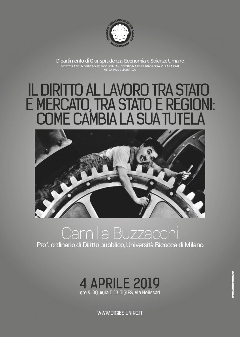 Il 4 aprile, a partire dalle ore ore 9.30, nell'Aula D 19 del DIGIES, Camilla Buzzacchi (ordinario di Diritto pubblico nell'Università di Milano Bicocca), svolgerà un seminario sul tema: "Il diritto al lavoro tra Stato e mercato, tra Stato e Regioni: come cambia la sua tutela".