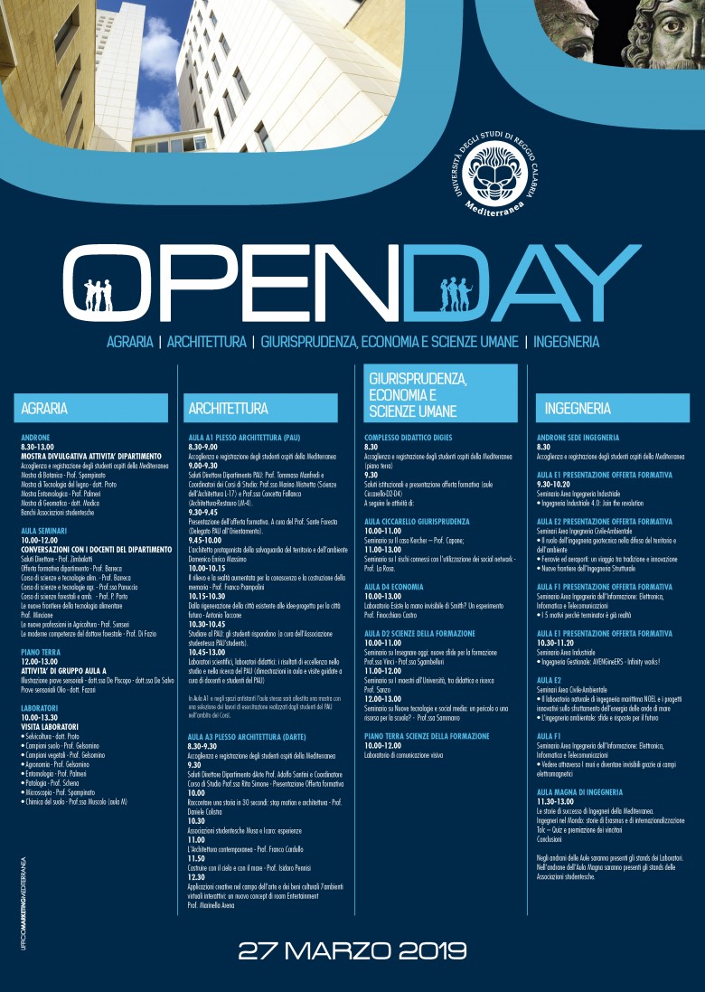 27 marzo OpenDay alla Mediterranea