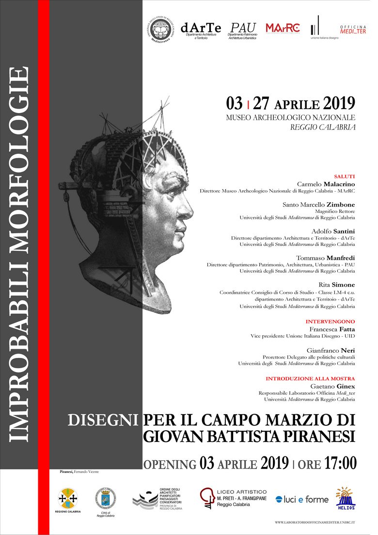 Il Dipartimento Architettura e Territorio della Università Mediterranea, in collaborazione con il Museo archeologico nazionale di Reggio Calabria, mercoledì 3 aprile alle ore 17:00 ha inaugurato la Mostra “Improbabili Morfologie. Disegni per il Campo Marzio di Giovan Battista Piranesi”, organizzata dal prof. Gaetano Ginex con i PhD Student Francesco Trimboli e Sonia Mercurio, in esposizione fino al 27 aprile 2019.