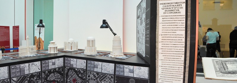 In esposizione i lavori di tre anni di studi e ricerche sul tema del Campo Marzio di Piranesi: disegni, ridisegni, modelli, istallazioni condotti dal prof. Ginex (titolare delle ricerche) con gli studenti del Corso integrato di Disegno e Rilievo dell Architettura, negli anni accademici dal 2014 al 2018.