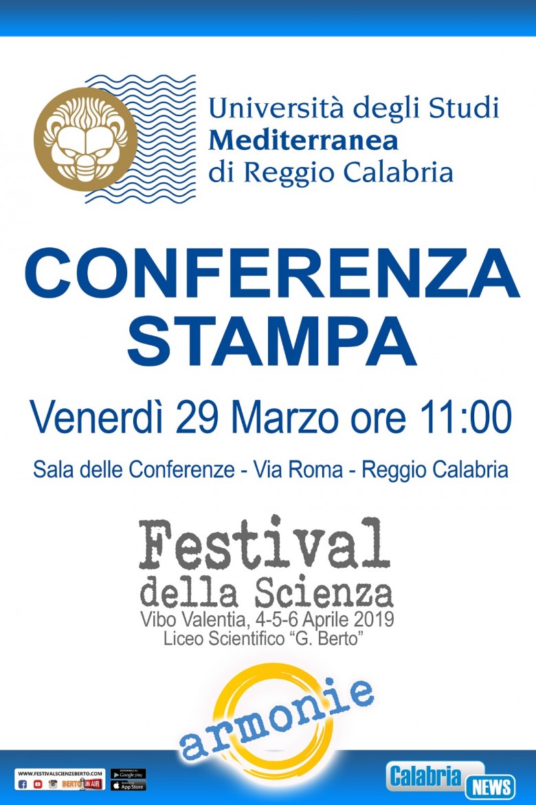 Venerdì 29 marzo alle ore 11.00, presso la Residenza universitaria di Via Roma, è convocata la conferenza stampa di presentazione del Festival della Scienza – Vibo Valentia 4-6 aprile.