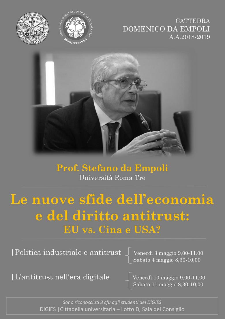 È apparso significativo che a tenere a battesimo la Cattedra fosse, per questo primo anno, il prof. Stefano da Empoli, figlio di Domenico ed economista a sua volta in ruolo nel Dipartimento di Giurisprudenza dell'Università di Roma Tre.