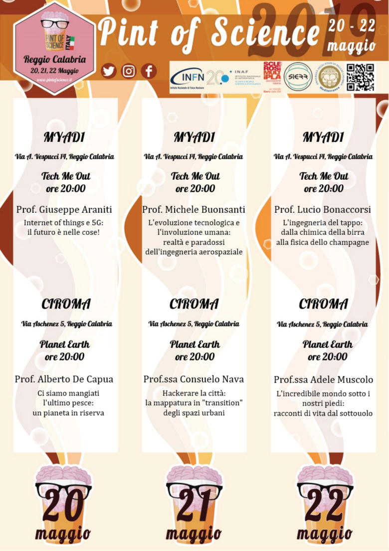 Tutto questo, e molto altro, è Pint of Science Reggio Calabria 2019: tre giorni e sei eventi di scienza alla portata di tutti nel cuore di Reggio Calabria.