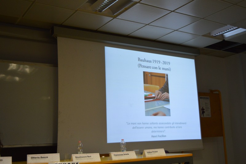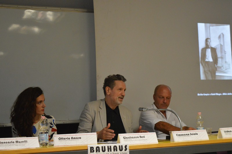 Dal desiderio di contribuire a un dibattito che vede nel rinnovato rapporto tra il corpo, lo spazio e le arti il luogo per una critica all’architettura e agli spazi sociali contemporanei, nasce questo programma di eventi dedicati alla scuola tedesca del Bauhaus. A distanza di un secolo è infatti giusto chiedersi se è ancora valido il modello multidisciplinare da lei suggerito e quali delle intuizioni riconducibili a quell’esperienza sono da considerarsi attuali e ancora importanti per il dibattito contemporaneo. Per cercare di rispondere a tali quesiti sono stati organizzati una serie di dibattiti, lezioni e mostre che a partire da ottobre 2019 si terranno nel corso del prossimo anno accademico. Storici dell’arte e dell’architettura, studiosi, architetti e artisti saranno invitati a relazionare sul fenomeno della Bauhaus e sull’opera Triadisches Ballet di Oskar Schlemmer, messa in scena per la prima volta a Stoccarda nel 1922. Il Balletto Triadico, pièce dal sapore grottesco, è un’opera teatrale che invita lo spettatore a riflettere sulla dimensione del corpo, sulle forme, i movimenti dell’uomo nello spazio architettonico e sul concetto di “Opera Totale” nella scuola della Bauhaus. Così come lo spazio della scena induce e in parte determina i movimenti del ballerino, qualsiasi altro spazio architettonico può determinare e mostrare all’utente delle opportunità di azione, suggerendone i modi d’uso: da qui l’importanza e la “responsabilità” del progetto.