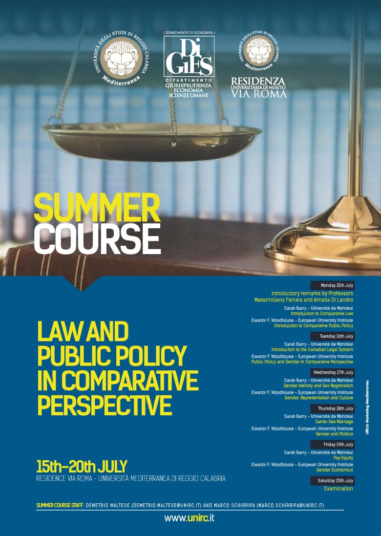 “Law and Public Policy in Comparative Perspective” è il titolo della summer school che sarà tenuta presso la Mediterranea dalle visiting professor Sarah Barry (Université of Montréal) ed Eleanor Woodhouse (EUI), dal 15 al 20 luglio.