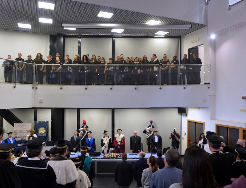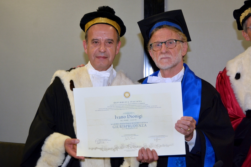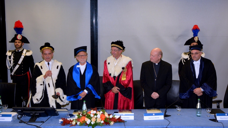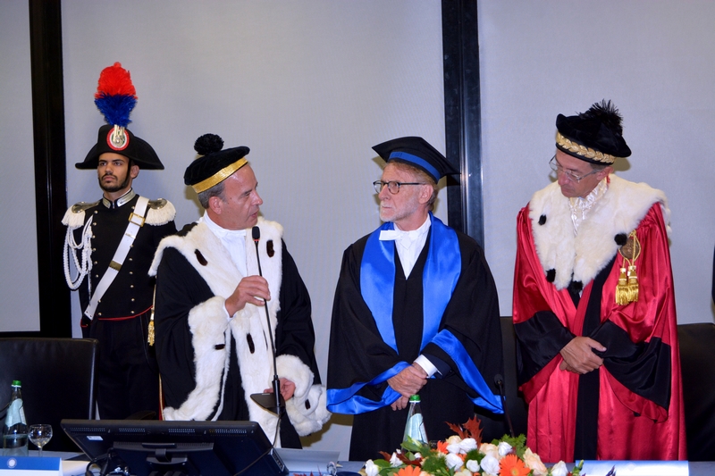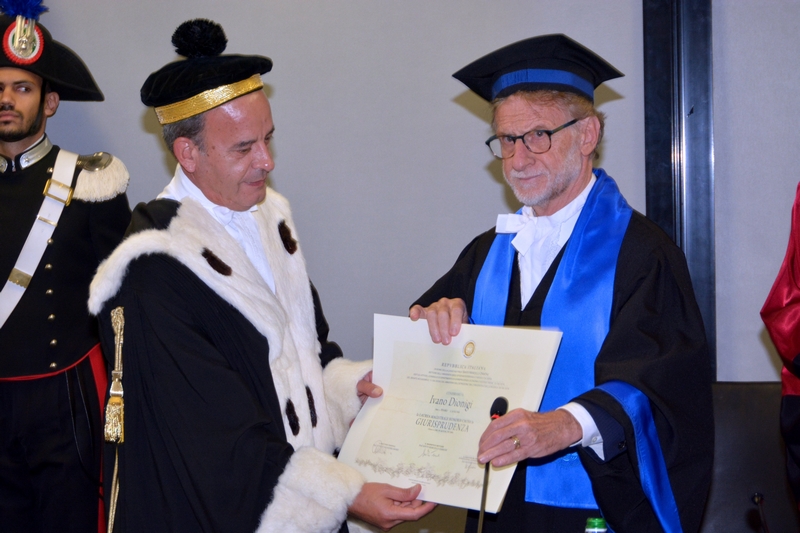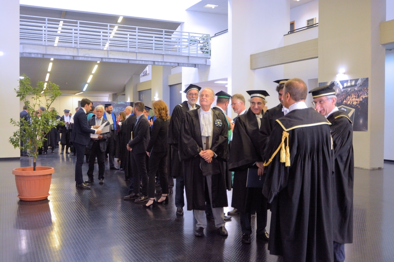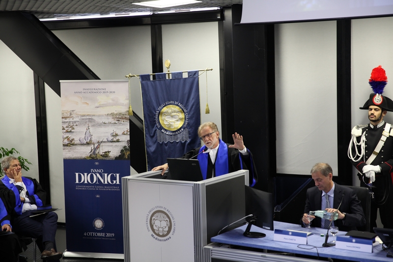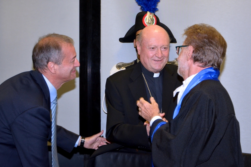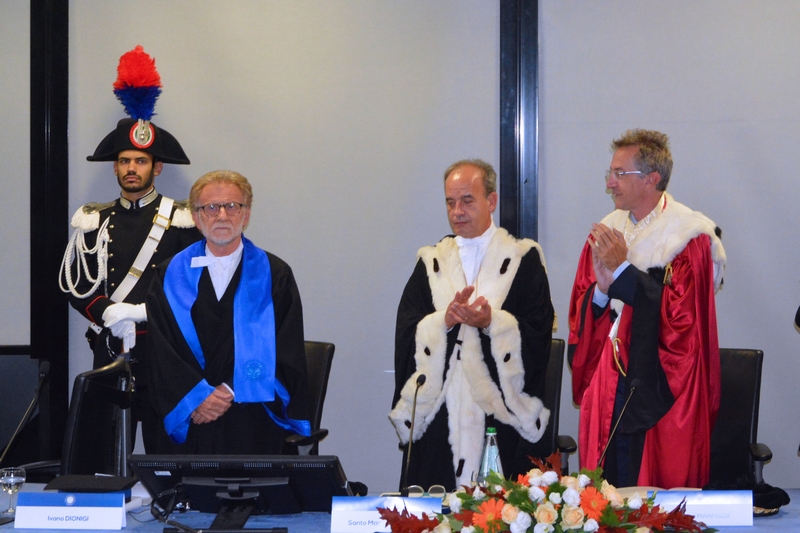 Venerdì 4 ottobre 2019, alle ore 10.30 nell’Aula Magna “Antonio Quistelli” della Cittadella universitaria, si è svolta la cerimonia d’inaugurazione dell’a.a. 2019-2020 con il conferimento, compartecipato dalla Conferenza dei Rettori delle Università Italiane, della Laurea Magistrale Honoris Causa in Giurisprudenza al prof. Ivano Dionigi, Presidente di Almalaurea, già Rettore dell’Università di Bologna.