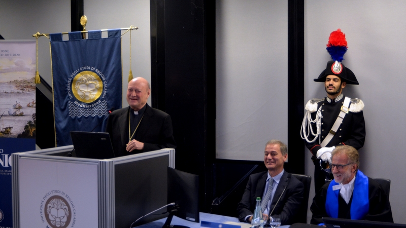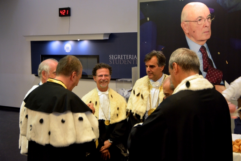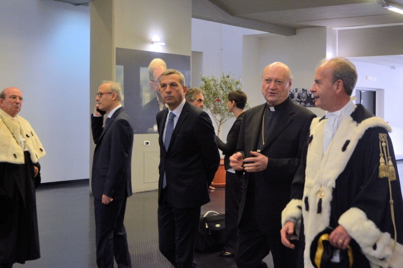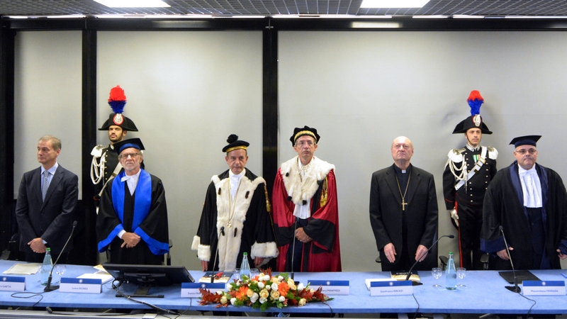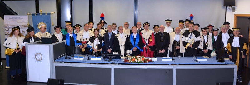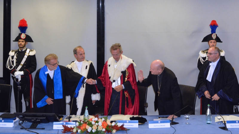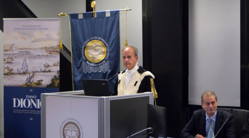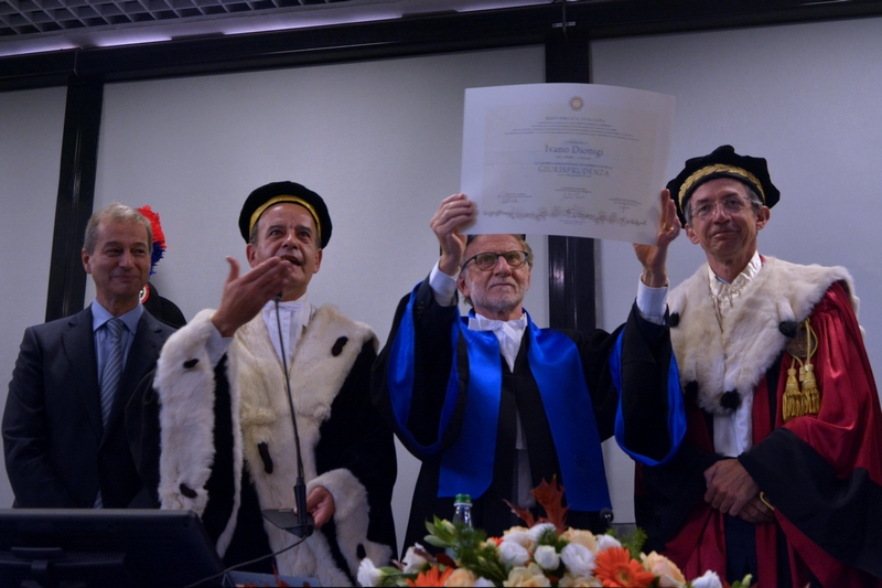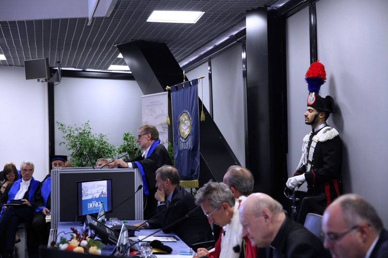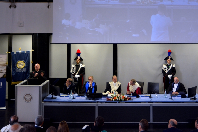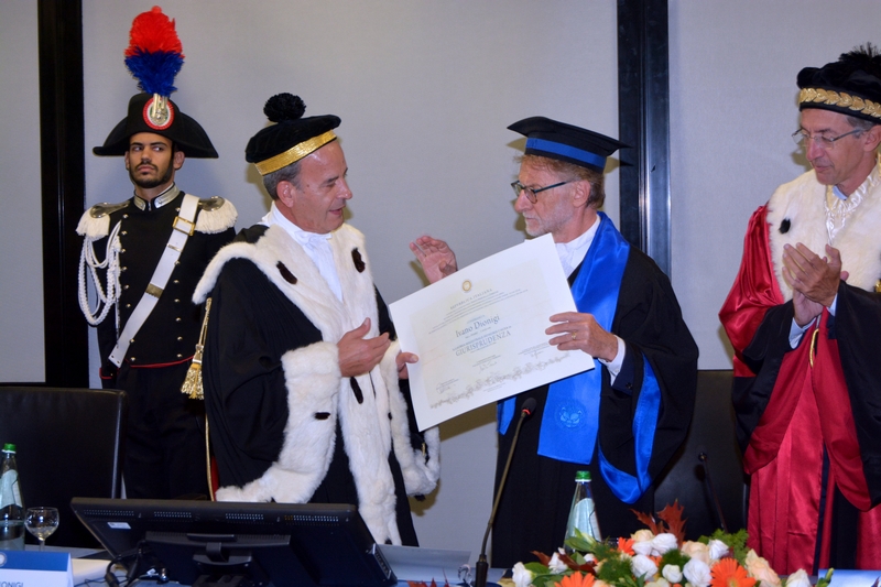 Venerdì 4 ottobre 2019, alle ore 10.30 nell’Aula Magna “Antonio Quistelli” della Cittadella universitaria, si è svolta la cerimonia d’inaugurazione dell’a.a. 2019-2020 con il conferimento, compartecipato dalla Conferenza dei Rettori delle Università Italiane, della Laurea Magistrale Honoris Causa in Giurisprudenza al prof. Ivano Dionigi, Presidente di Almalaurea, già Rettore dell’Università di Bologna.