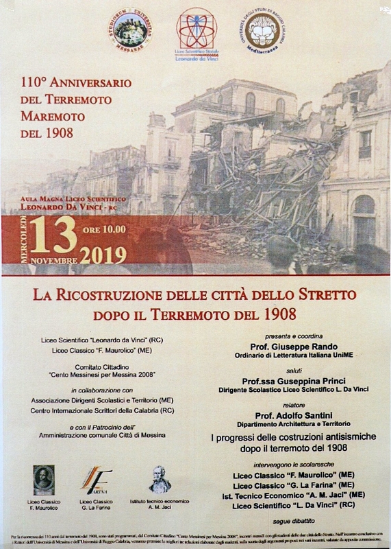 All'interno delle attività di orientamento promosse dal Dipartimento di Architettura e Territorio (dArTe), mercoledì 13 novembre, presso il Liceo Vinci di Reggio Calabria si è svolto l'incontro in occasione del 110° anniversario del Terremoto di Messina e Reggio.