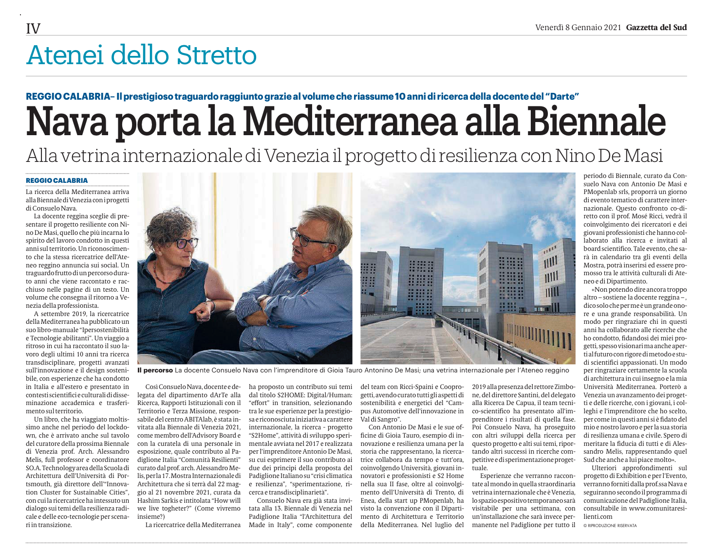 La prof.ssa Consuelo Nava, ricercatrice e delegata dArTe alla Ricerca, Rapporti Istituzionali con il Territorio e Terza Missione, resp. del centro ABITAlab, è stata invitata alla Biennale di Venezia 2021, come membro dell’Advisory Board e con la curatela di una personale in esposizione, quale contributo al Padiglione Italia “Comunità Resilienti” curato dal prof. Arch. Alessandro Melis, per la 17à Mostra Internazionale di Architettura che si terrà dal 22 maggio al 21 novembre 2021, curata dall’architetto, docente e ricercatore Hashim Sarkis.
