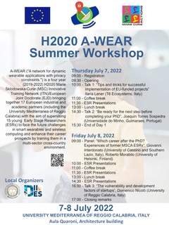 Nelle giornate del 7 e 8 Luglio 2022, presso l’Aula Quaroni dell’Università Mediterranea di Reggio Calabria, si terrà l’H2020 A-WEAR 2022 Summer Workshop.
