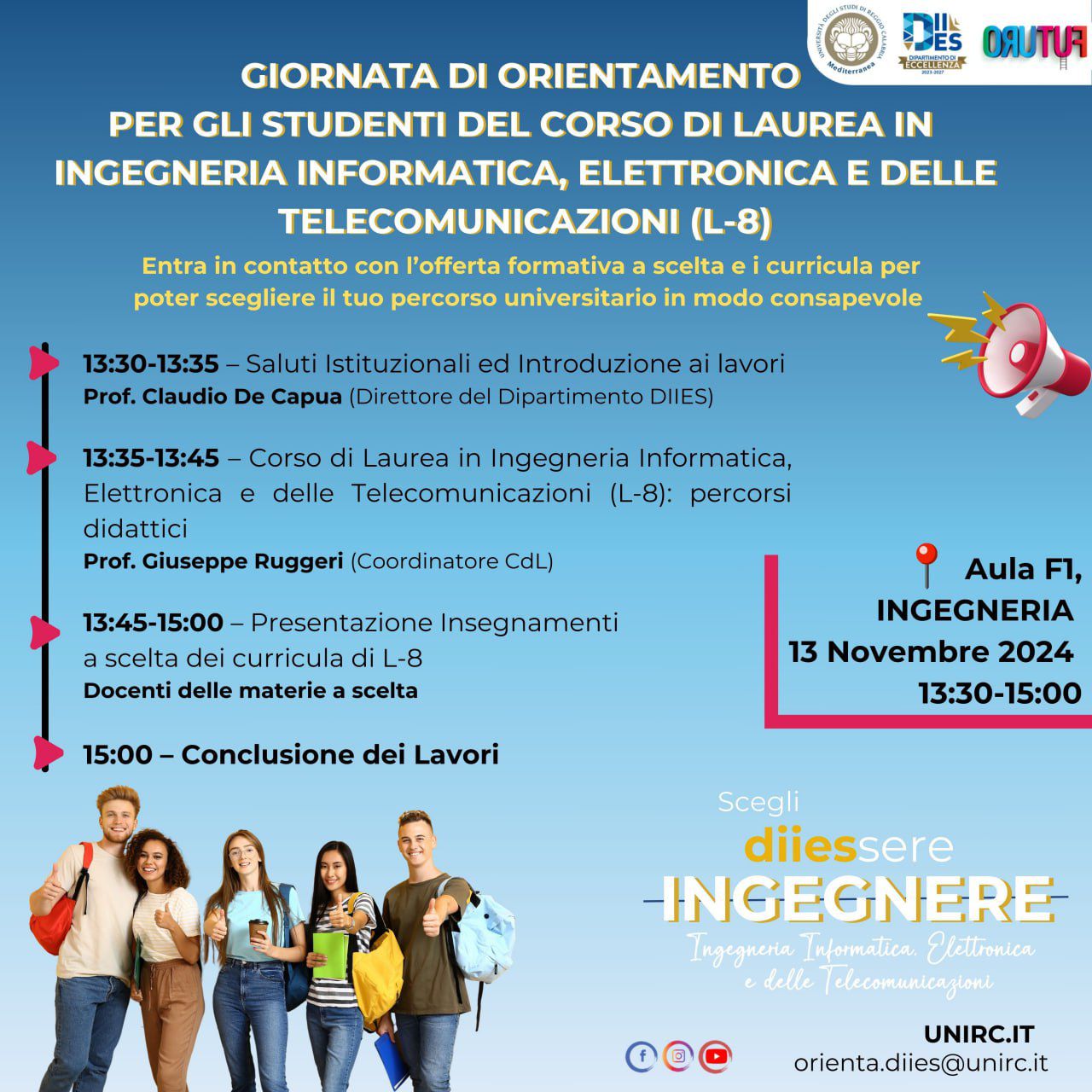 DIIES_Orientamento per gli studenti del Corso di Laurea in Ingegneria Informatica, Elettronica e delle Telecomunicazioni (L8) Mercoledì 13 Novembre