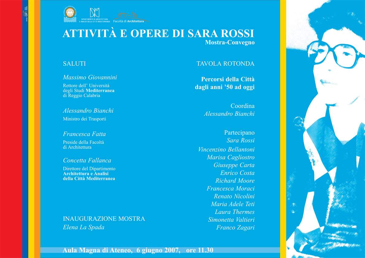 Il 6 giugno 2007 alle ore 11,30, presso l'Aula Magna di Ateneo si terrà l'incontro "Attività e opere di Sara Rossi" e l'inaugurazione della mostra. Seguirà la Tavola rotonda "Percorsi della Città dagli anni '50 ad oggi". In allegato la locandina.
