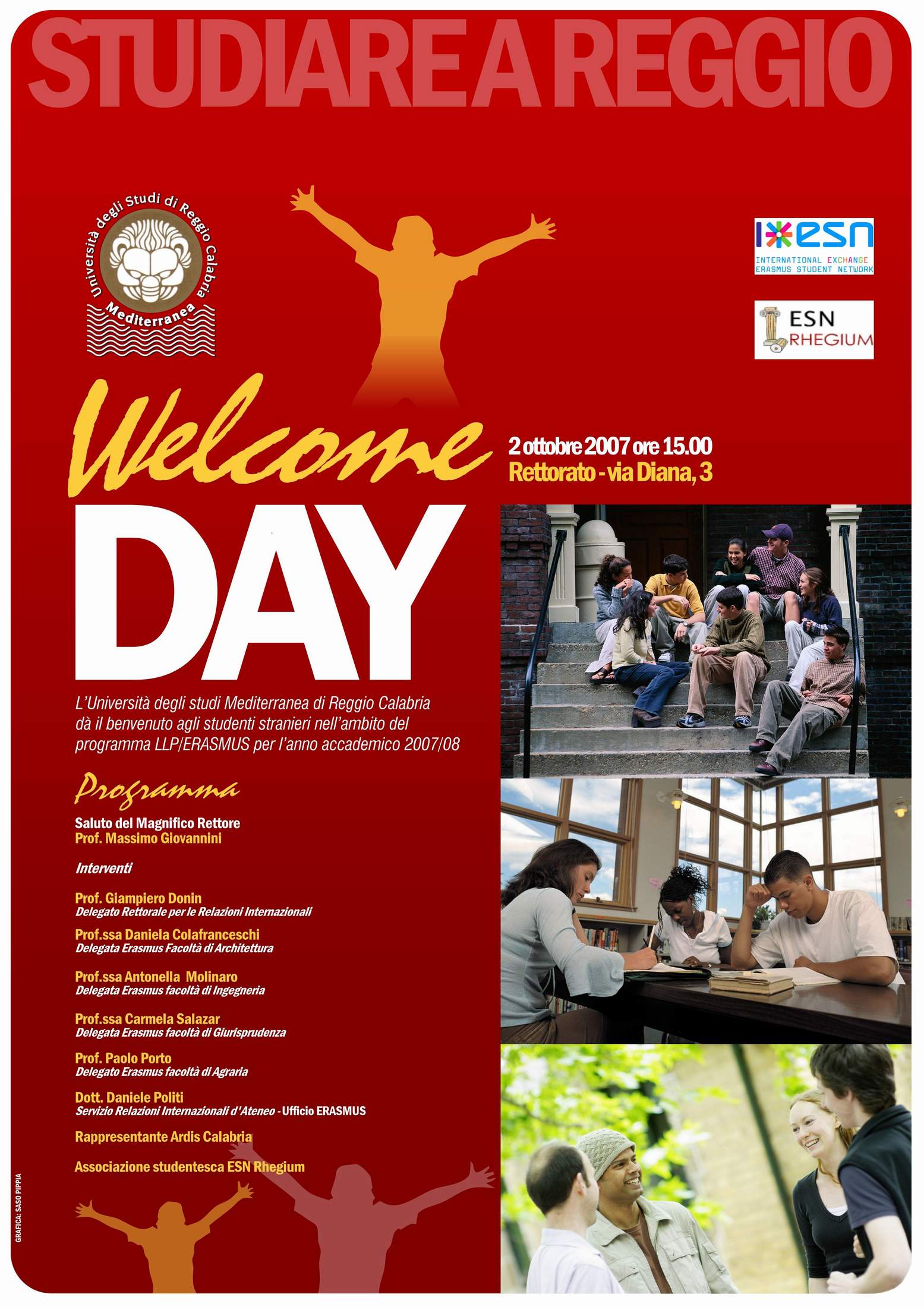 Il 2 ottobre presso il Rettorato si svolge il Welcome Day. Il Rettore, i responsabili del Servizio relazioni internazionali ed i delegati Erasmus danno il benvenuto agli studenti stranieri dell'a.a. 2007/08. In allegato la locandina.