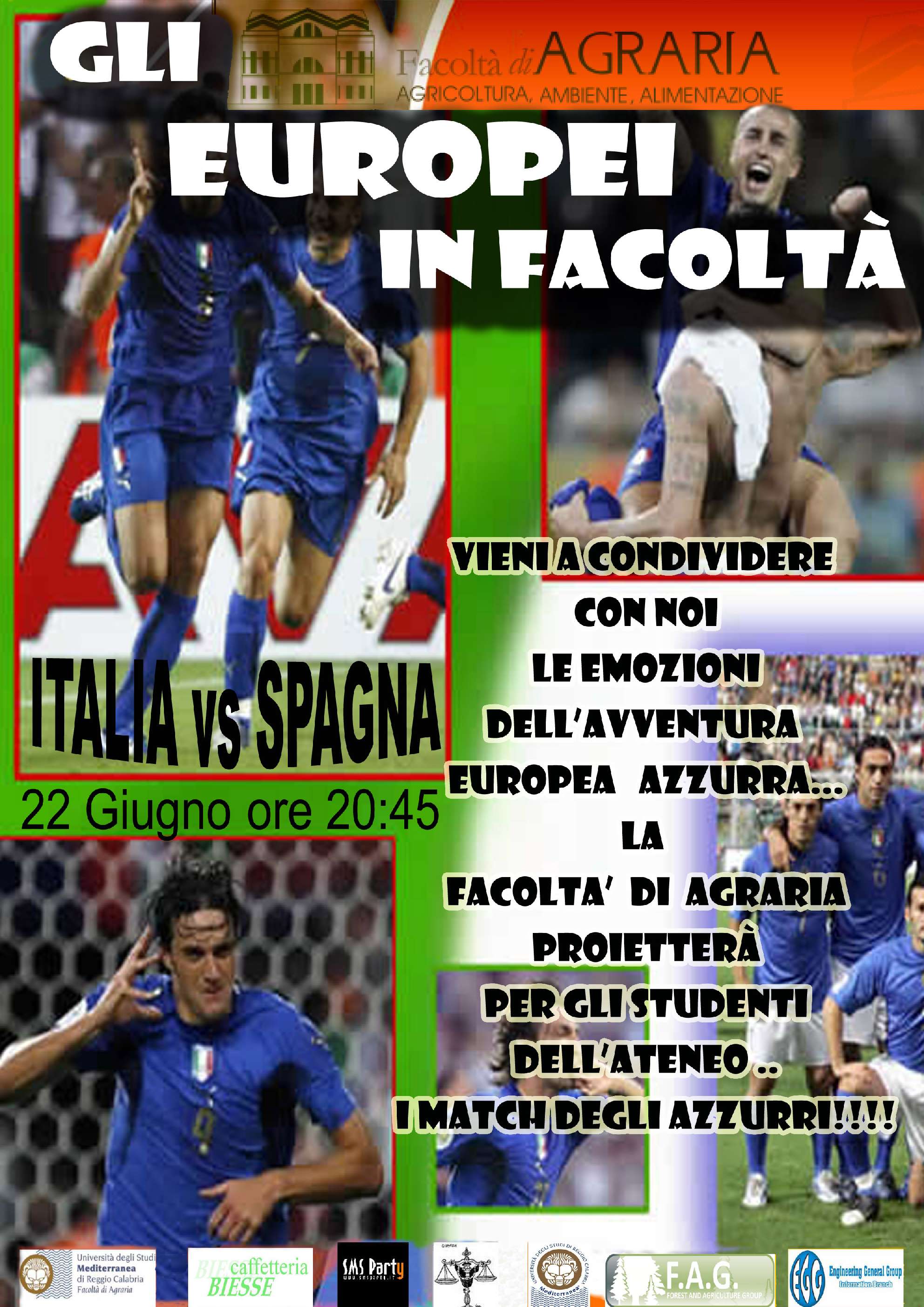 La Facoltà di Agraria su iniziativa del F.A.G (Forest and Agriculture Group), in occasione dei campionati europei di calcio, ha approntato la trasmissione in diretta delle partite della Nazionale Italiana sui maxi schermi della Facoltà. Accesso libero: Italia - Spagna 22 giugno 20:45 Locandina in allegato